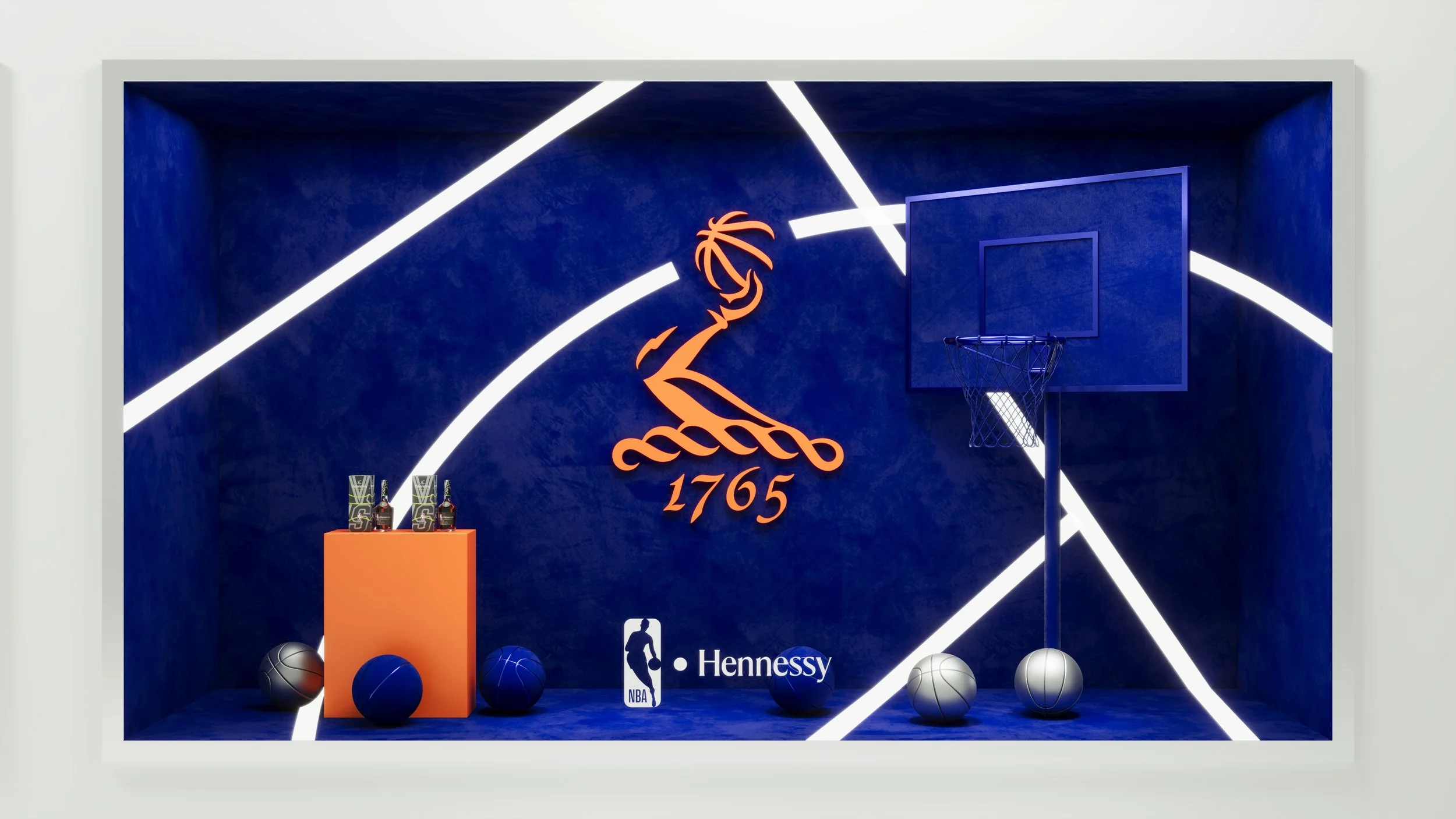 Création d’une série de 6 vitrines animées mettant en lumière la collaboration d’Hennessy et la NBA.