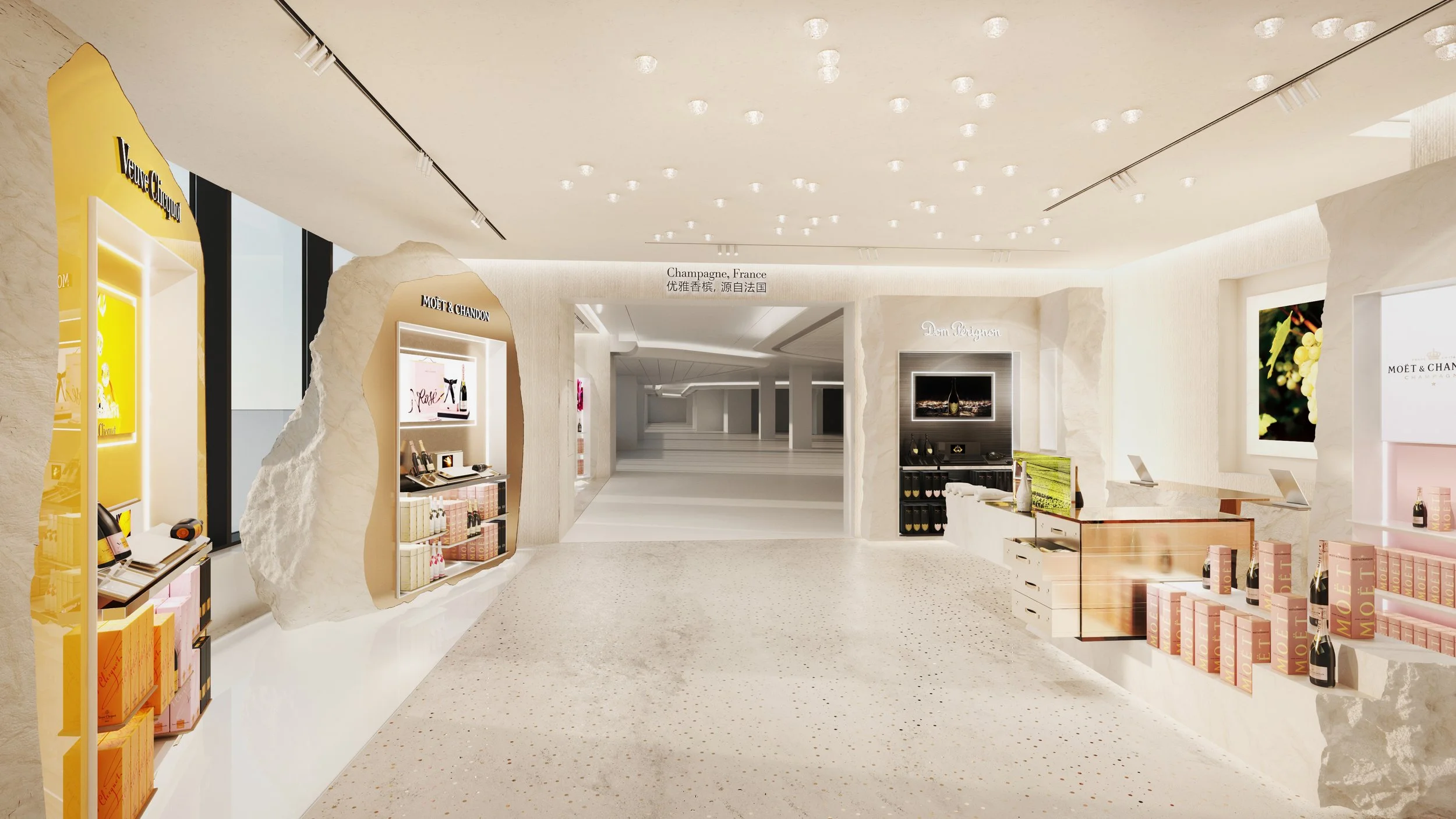 Création de visuels 3D et accompagnement créatif pour le Store de Moët & Chandon situé au CNSC Sanya en Chine.